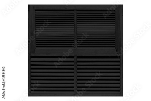 European antique black wooden shutters window isolated on a white background