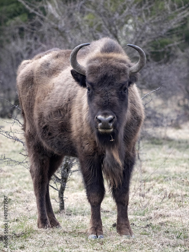 European bison, Bison bonasus, in the Milovice nature reserve, Czech Republic
