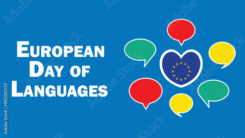 European Day of Languages vector banner design with geometric shapes and vibrant colors on a horizontal background.