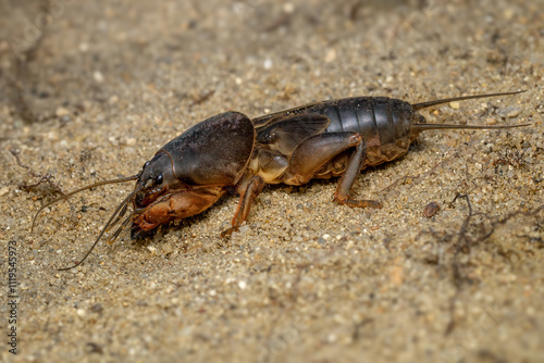 European Mole Cricket - Gryllotalpa gryllotalpa, large unique underground insect from Euroasian meadows and grasslands, Czech Republic.