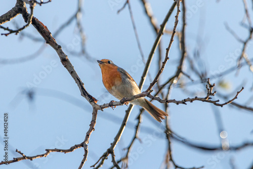 European Robin perched on a tree branch