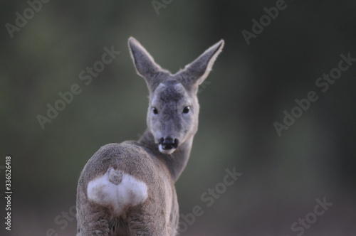 European roe deer (Capreolus capreolus) posing and displaying on camera