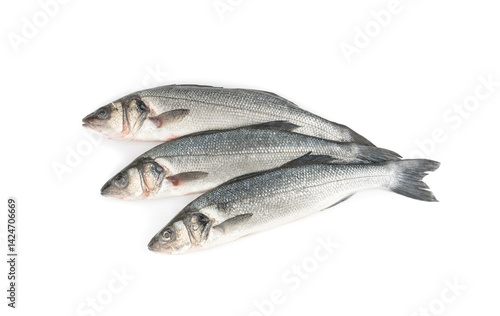 European seabass or Dicentrarchus labrax, whole raw labrax, branzino fish, European bass
