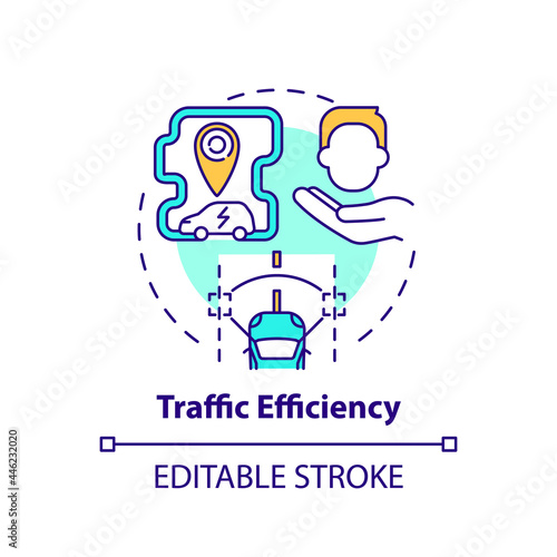 EV traffic efficiency concept icon. Electric vehicle comfort using abstract idea thin line illustration. Eco-friendly car benefits. Vector isolated outline color drawing. Editable stroke