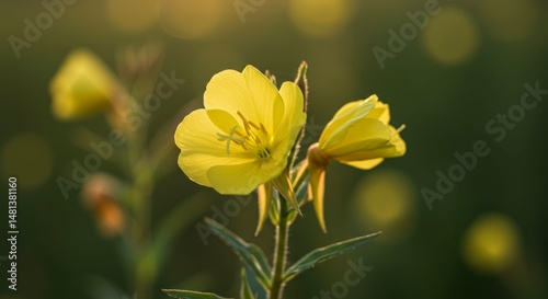Evening Primrose blooms in gentle sunlight, a natural symphony of color
