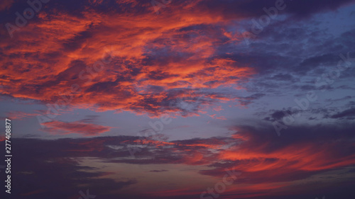 evening sky with thunderclouds. Natural view with blue and red, magenta colors clouds.