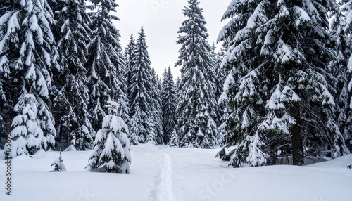 Evergreen conifer forest covered with snow showing natural seasonal beauty