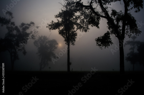 Evergreen rainforest mountains captured during an early foggy morning at Kaziranga National Park, Assam, Northeast, India.