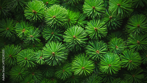 Evergreen Texture: A mesmerizing close-up of lush green pine needles, forming a captivating pattern of nature's intricate details.
