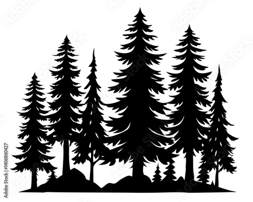 Evergreen Trees Silhouette Vector & SVG | Pine & Forest Tree Vector for Outdoor Crafts