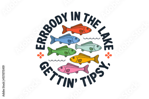Everybody in the lake gettin tipsy with colorful fish and water Lake life Summer Sublimation design