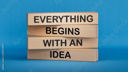 Everything begins with an idea symbol. Concept word Everything begins with an idea on wooden blocks. Business everything begins with idea concept. Copy space.3D rendering on blue background.