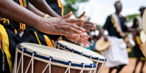 Ewe Agbadza Dance Drums. A close-up of hands beating drums in the Agbadza dance, a traditional Ewe dance performed in Ghana and Togo.