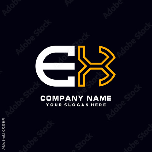 EX initial logo oval shaped letter. Monogram Logo Design Vector, color logo white blue, white yellow,black background.