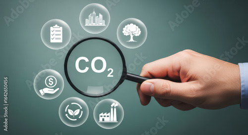 Examining Carbon Dioxide Reduction Strategies A Close Look at Sustainable Practices and Environmental Responsibility for a Greener Future with Magnifying Glass