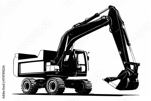 Excavator illustration in black and white style