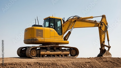Excavator isolated on white background. Digger Isolated On White. Crawler excavator isolated on white background.