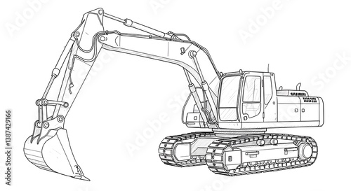 Excavator Machine Illustration Heavy Construction Equipment Vehicle Outline Isolated
