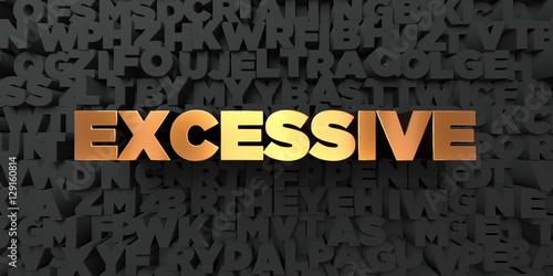Excessive - Gold text on black background - 3D rendered royalty free stock picture. This image can be used for an online website banner ad or a print postcard.