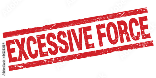 EXCESSIVE FORCE text on red rectangle stamp sign.