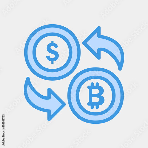 Exchange dollar and bitcoin icon in blue style about currency, use for website mobile app presentation