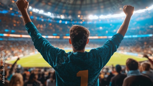 Excited Fan Cheering at Stadium Sports Game Victory Celebration Crowd Audience Blue