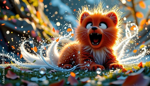 Excited furry elemental vibrating with kinetic energy