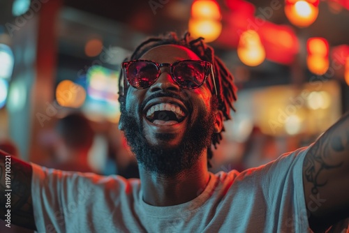 Excited men cheering while watching watching sports game on TV in bar Generative AI