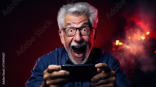 excited play games by mobile phone make winner gesture. winning mobile gambling. Wow face expression. Esport streaming game online, surprise, gamer, online, earning, new generation.