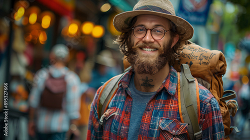 Excited Traveler Holding "Vacation Time!" Sign, Ready for Adventure