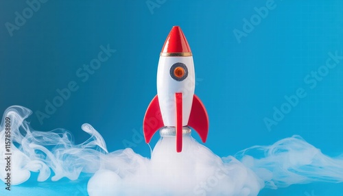 Exciting Toy Rocket Launching with Colorful Smoke Against a Vibrant Blue Background A Symbol of Success and Innovation in the Startup Education Space