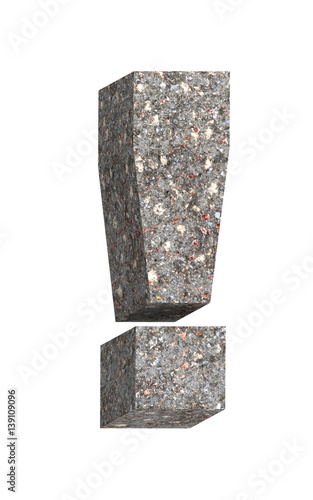 Exclamation mark from brake pads surface alphabet set isolated over white. 3D illustration.
