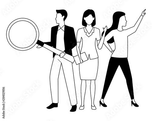Executive business workers with tools in black and white