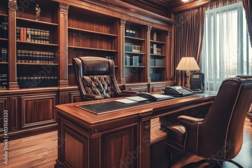 Executive office with a large desk and leather chair