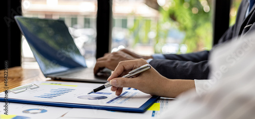 Executives and managers are meeting in a conference room, on the table there are some documents about the company's finances, managers are discussing financial information with the management.