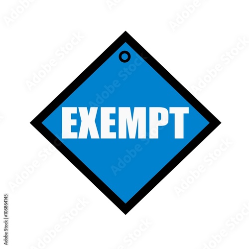 EXEMPT white wording on quadrate blue background