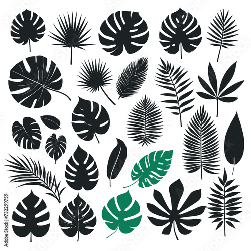Exotic leaves set tropical leaf collection monstera palm leaves silhouette pack