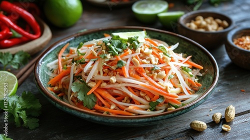 Exotic Thai Papaya Salad Featuring Vibrant Colors and Fresh Ingredients Composition