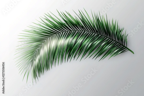 Exotic Tropical Palm Leaf Close-Up: Lush Green Foliage Isolated on Pure White Background, Perfect for Summer Designs, Tropical Themed Projects, Vacation Branding, Website Banners, and Print