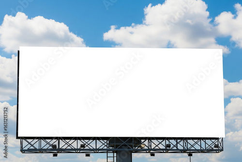 Expansive Blank Billboard Against a Vivid Blue Sky with Fluffy White Clouds
