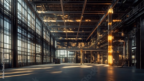 Expansive Concrete Floor in Modern Factory with Large Windows