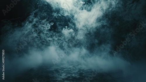Expansive foggy scene with smoke moving across a black background, mysterious ambiance