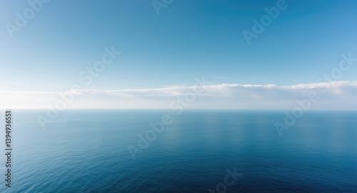 Expansive panorama of a clear sky setting for travel inspiration at the ocean with radiant sunlight and charming clouds.