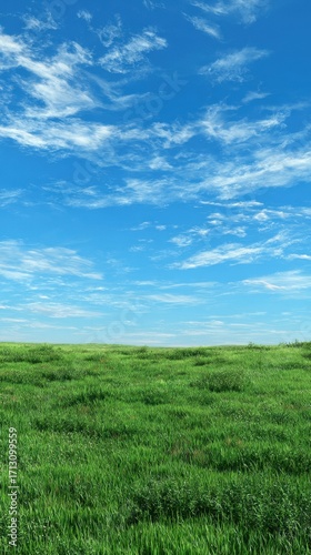 Expansive Prairie Landscape Under a Vast Azure Sky.
