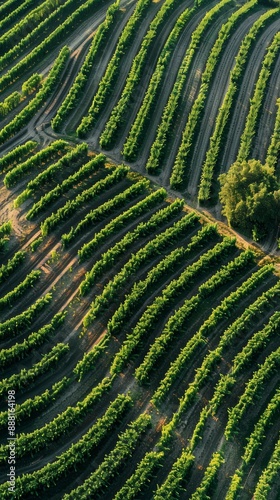 Expansive Rural Agriculture: Aerial View of Sustainable Farming Practices and Crop Rows