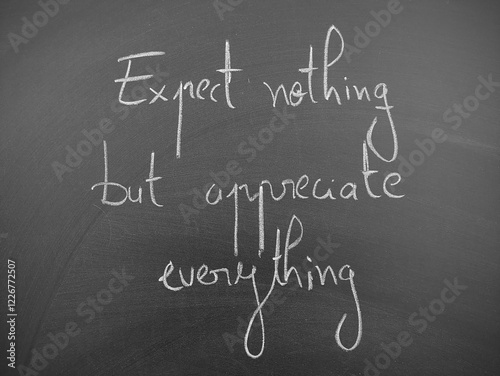 Expect nothing but appreciate everything motivational quote written on a black chalkboard background