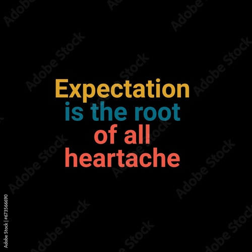 Expectation is the root of all heartache. motivational quotes for motivation, inspiration, success, and t-shirt design.