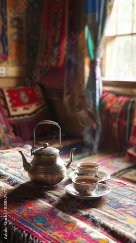 Experience a cozy Azerbaijani tea ceremony in a vibrant space with handmade textiles