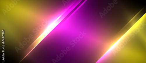 Experience a vibrant visual effect with a purple and yellow background highlighted by a glowing diagonal line. Neon colors like electric blue and magenta create a stunning display of art