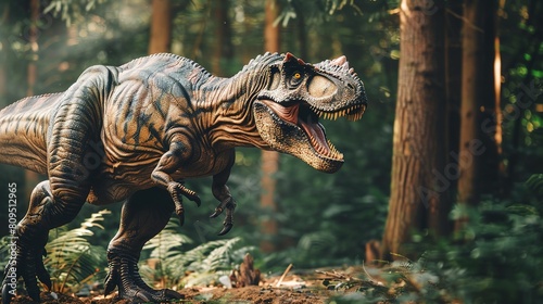Experience the Thrilling Fear of Encountering a Tyrannosaurus Rex, Its Enraged Roars Echoing Through a Prehistoric Forest, a Remnant of a Bygone Era